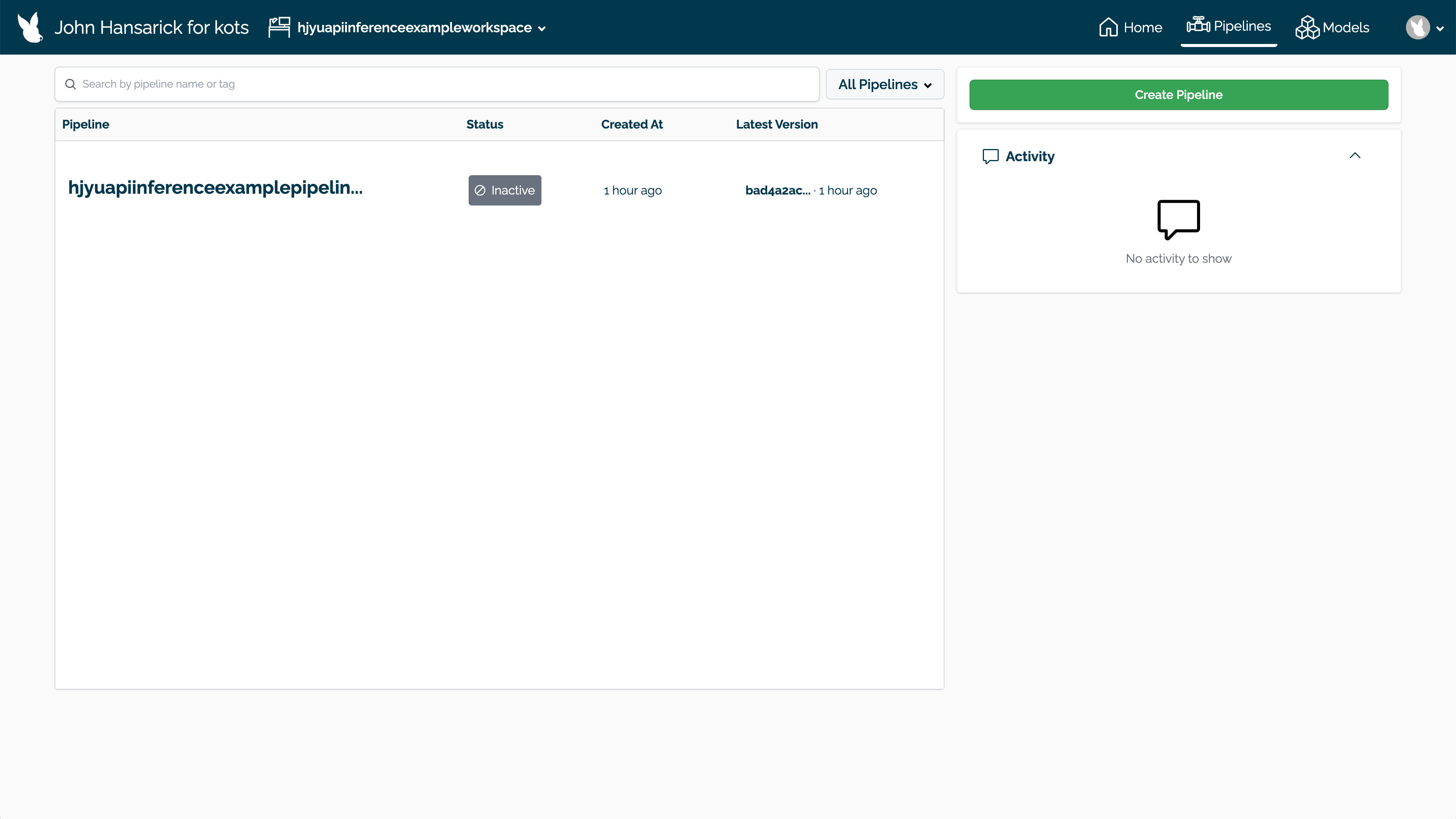 - Deploy Your Pipeline: Deploying a pipeline allocates resources from your Kubernetes environment for your models.