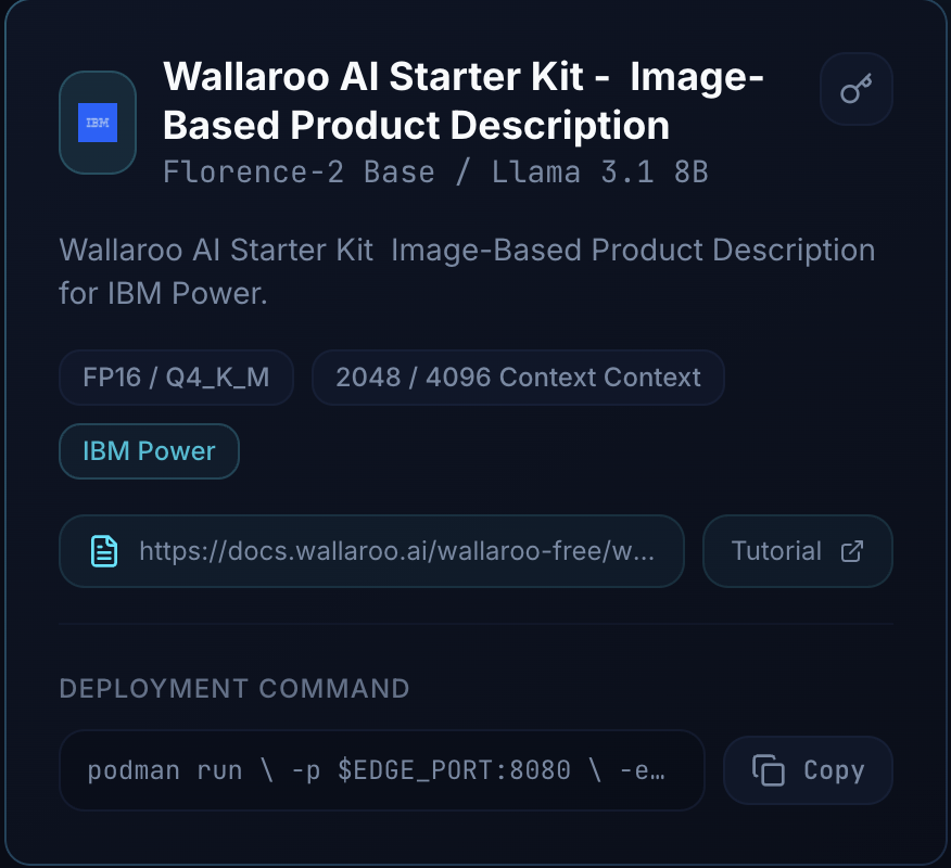 This tutorial demonstrates how to use the Wallaroo AI Starter Kit for IBM Power to deploy the Image-Based Product Description model in an IBM Logical Partition (LPAR).