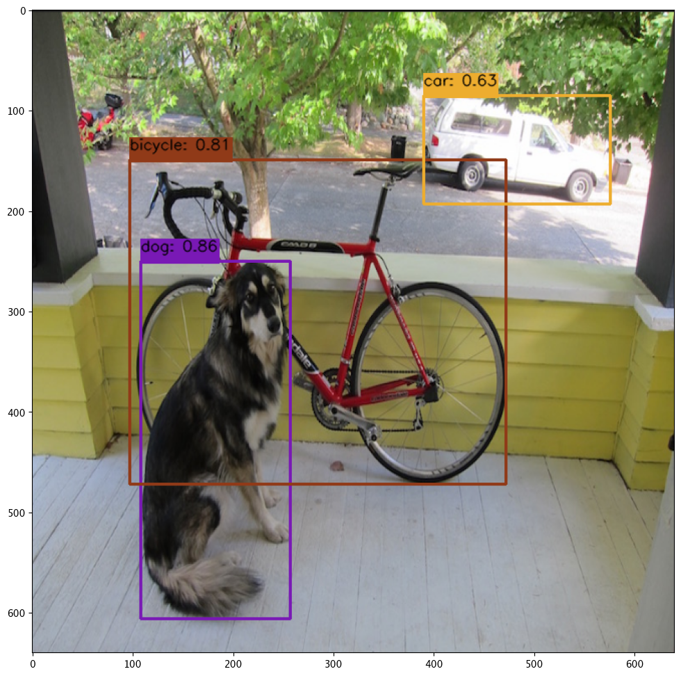 Using our helper method cvDemo we’ll identify the objects detected in the photo and their bounding boxes. Only objects with a confidence threshold of 50% or more are shown.