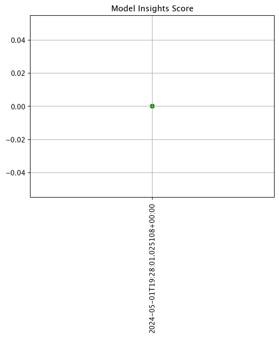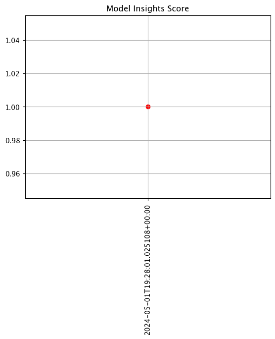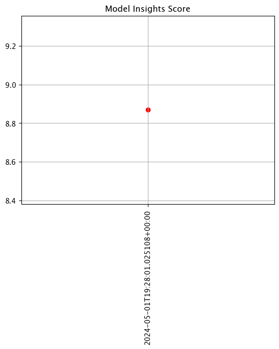Figure: A daily assay that’s been running for a month. The dots represent the difference between the distribution of values in the daily observation window, and the baseline. When that difference exceeds the specified threshold (indicated by a red dot) an alert is set.