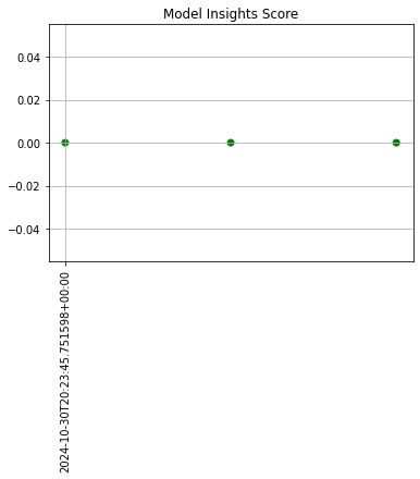 Figure: A daily assay that’s been running for a month. The dots represent the difference between the distribution of values in the daily observation window, and the baseline. When that difference exceeds the specified threshold (indicated by a red dot) an alert is set.