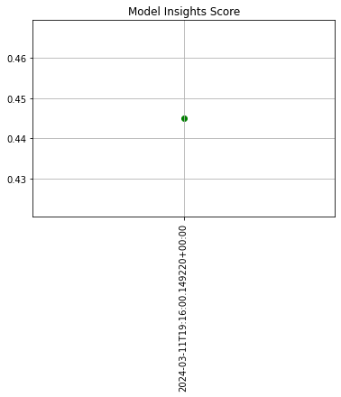 Figure: A daily assay that’s been running for a month. The dots represent the difference between the distribution of values in the daily observation window, and the baseline. When that difference exceeds the specified threshold (indicated by a red dot) an alert is set.