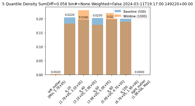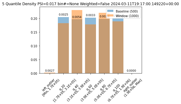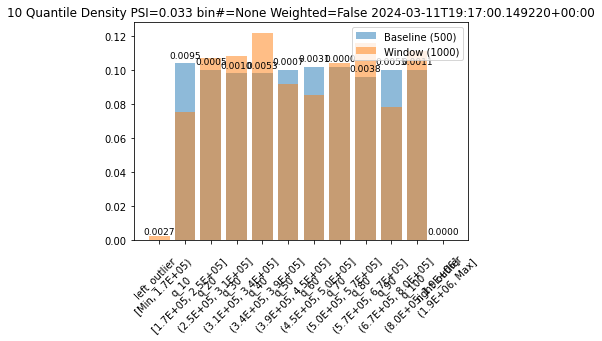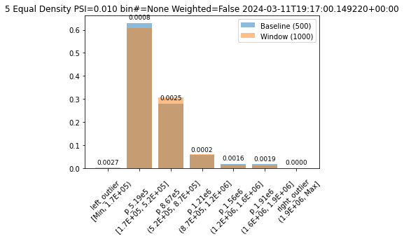 Number of bins sets how the baseline data is partitioned. The total number of bins includes the set number plus the left_outlier and the right_outlier, so the total number of bins will be the total set + 2.