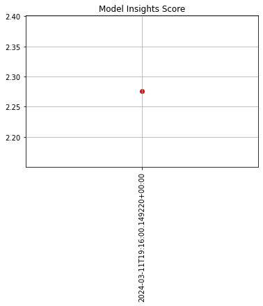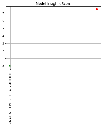 Figure: A daily assay that’s been running for a month. The dots represent the difference between the distribution of values in the daily observation window, and the baseline. When that difference exceeds the specified threshold (indicated by a red dot) an alert is set.